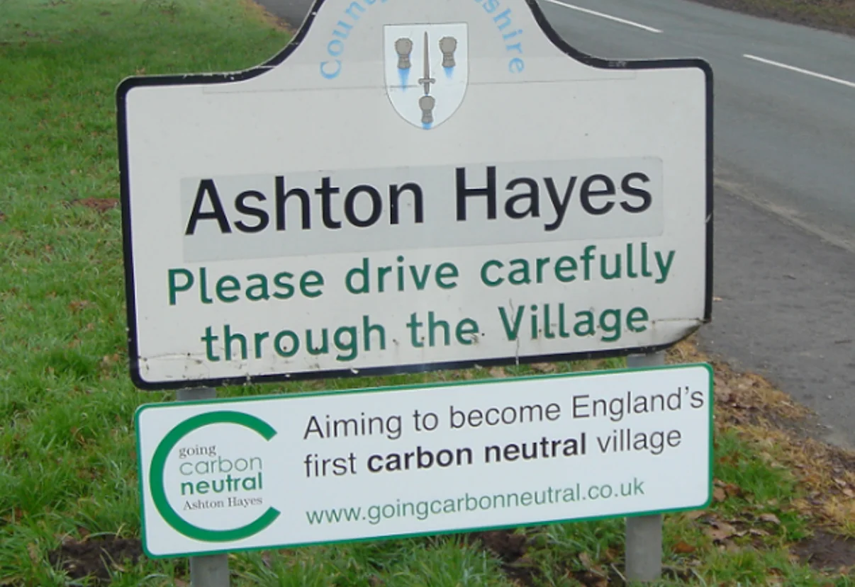The narrative offers a series of surprises: Ashton Hayes citizens steered the project clear of political parties and politicians; at the project’s first meeting half of the village population showed up; the MO was public 'wine and cheese meetings' in private homes; and the initiative has attracted global interest from "200 towns, cities and counties" (including New Jersey's Upper Saddle River).